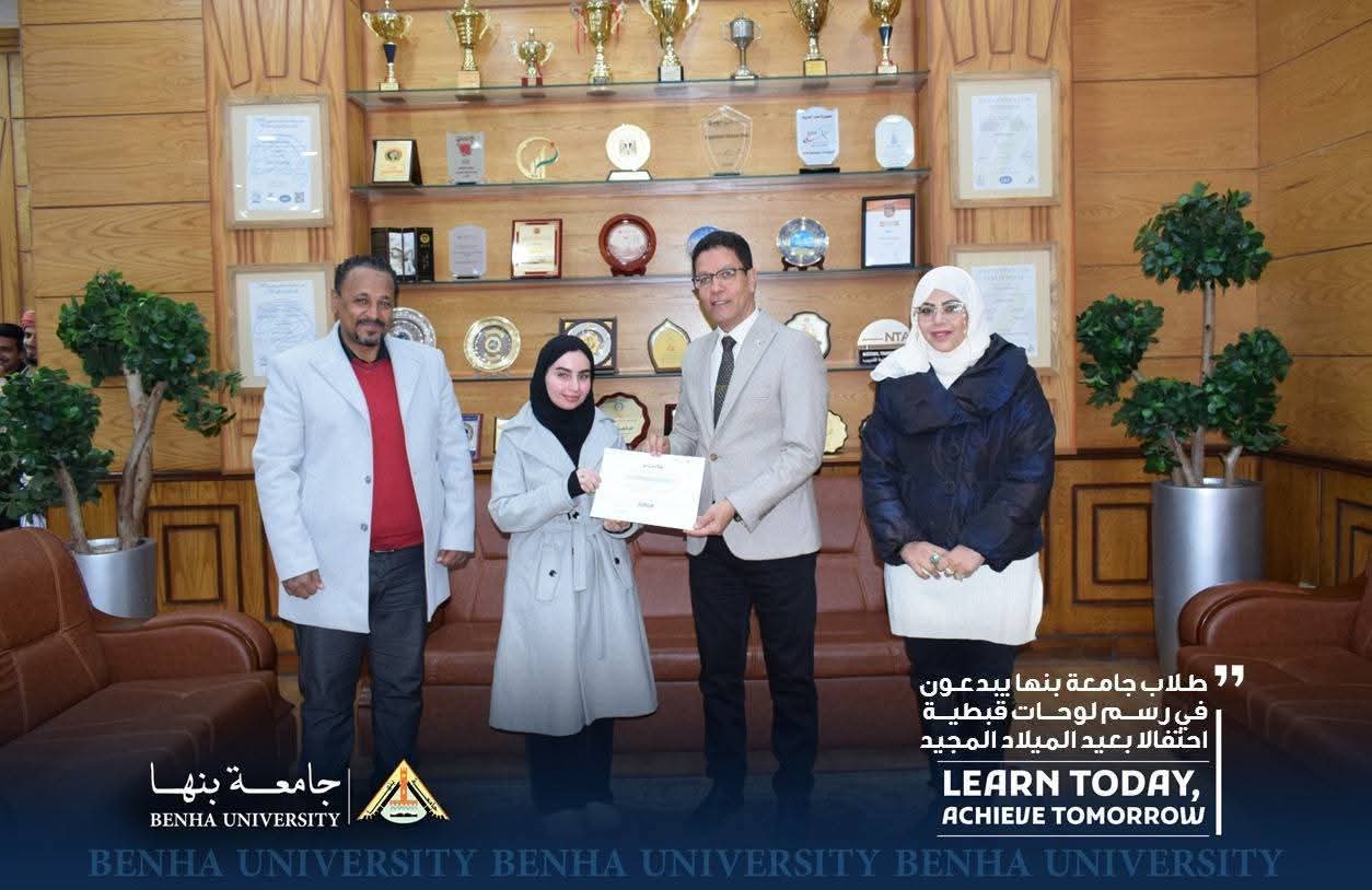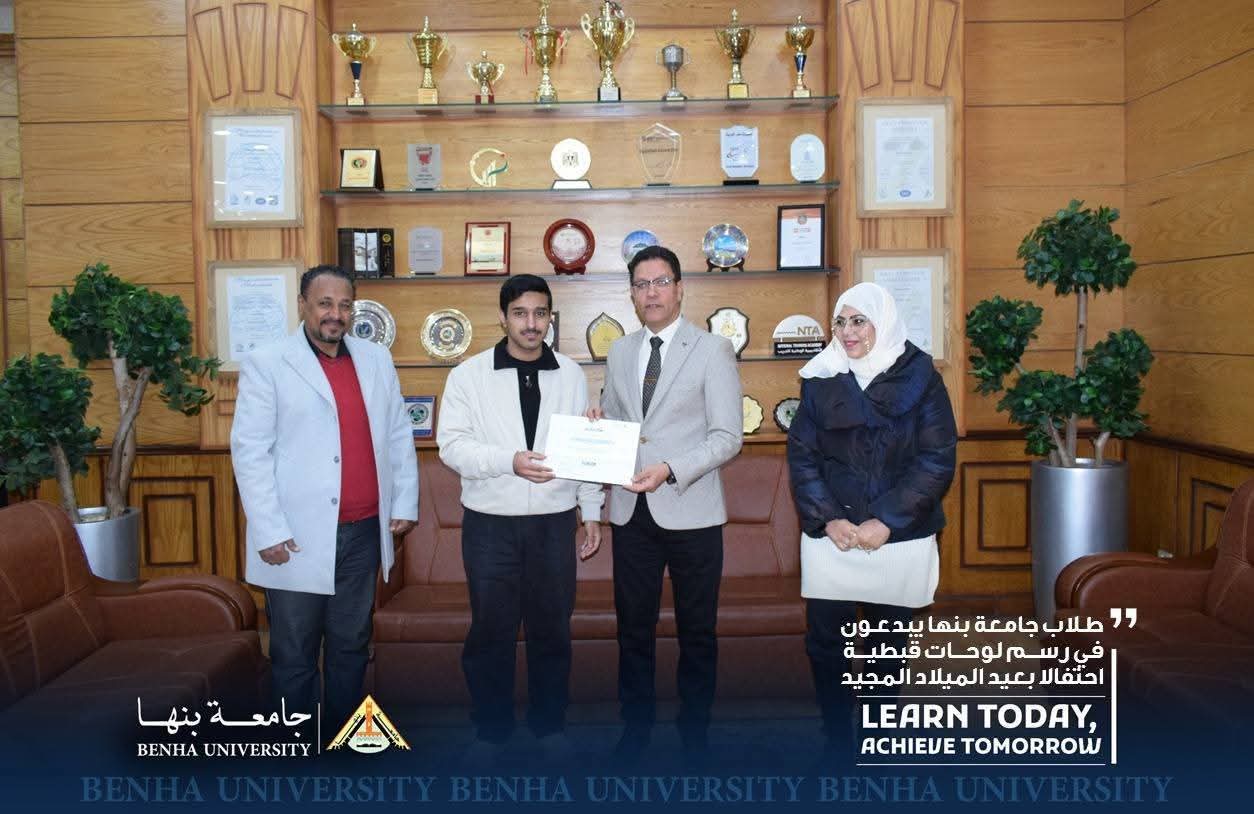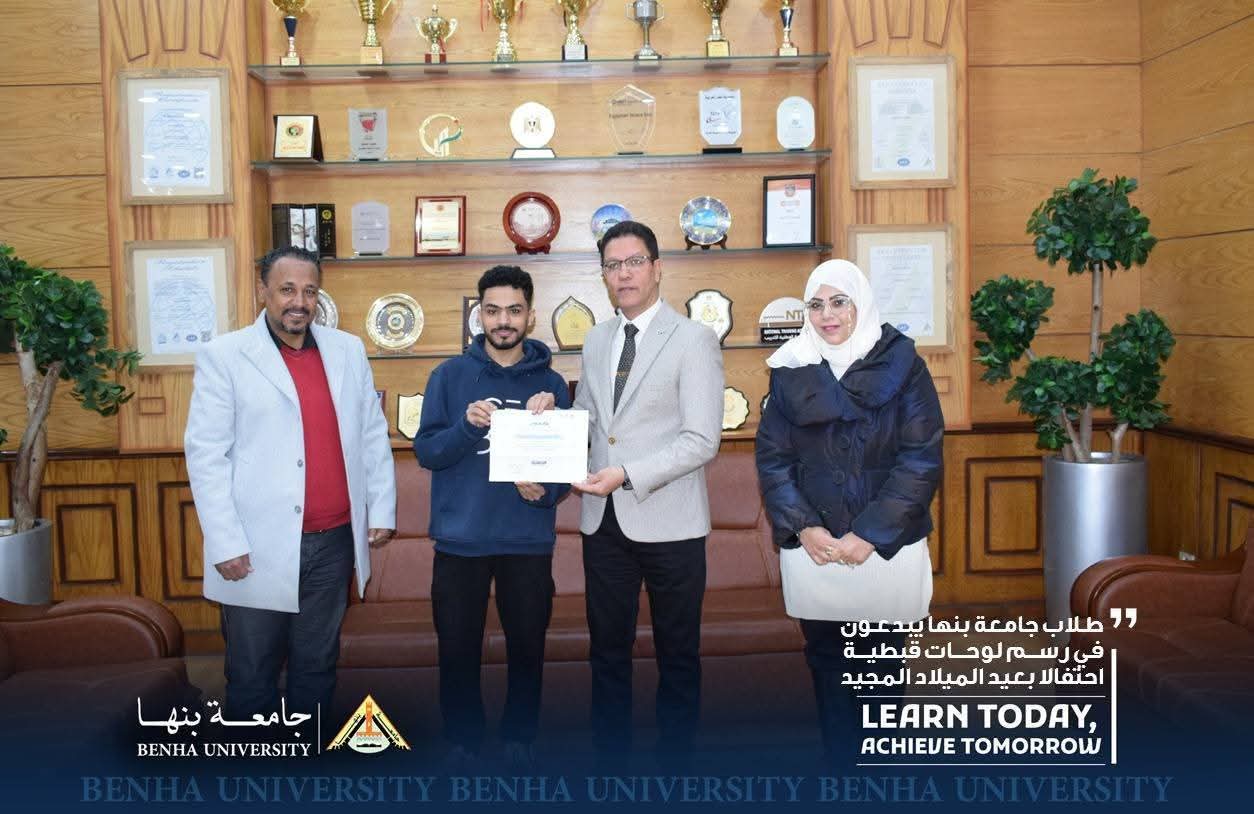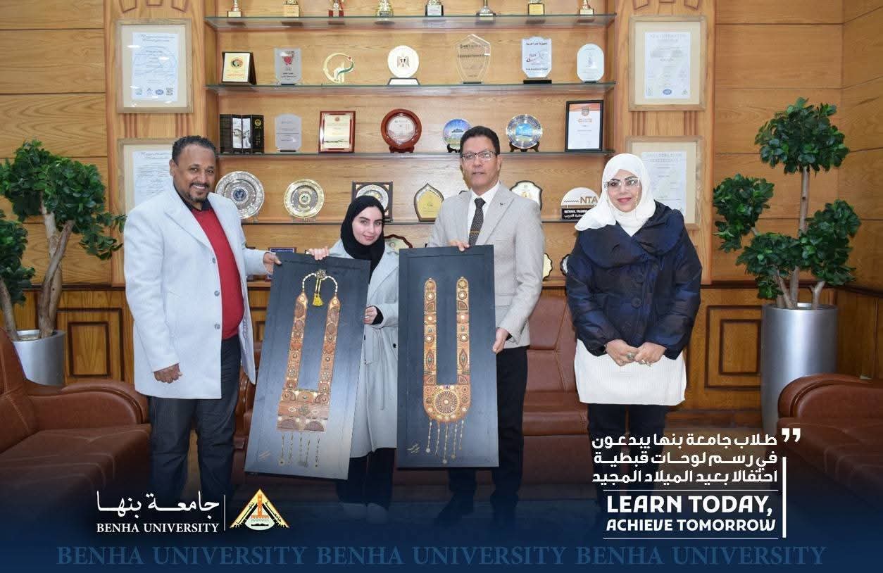 أشاد الدكتور ناصر الجيزاوي رئيس جامعة بنها ، بإبداع الطلاب المتميزين المصريين والعمانيين الدارسين بالجامعة في رسم لوحات قبطية احتفالا بعيد الميلاد المجيد.