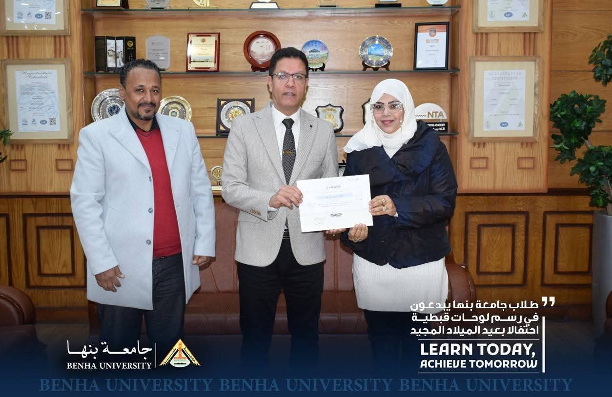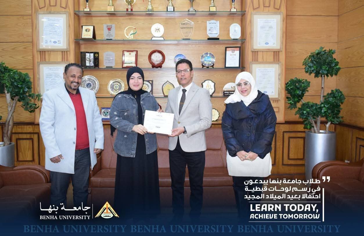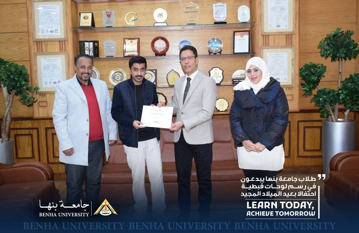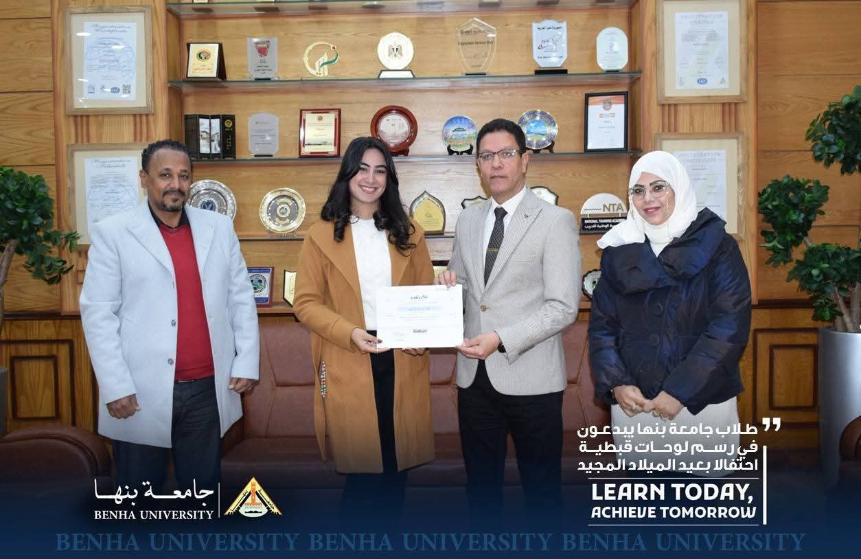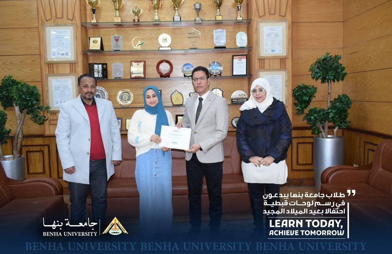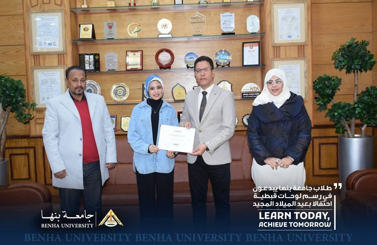 جاء ذلك خلال تكريم رئيس الجامعة لهم ، بحضور الدكتور هاني شحته عميد كلية التربية النوعية ، والدكتورة سيدة صقر المشرفة على أعمال الطلاب