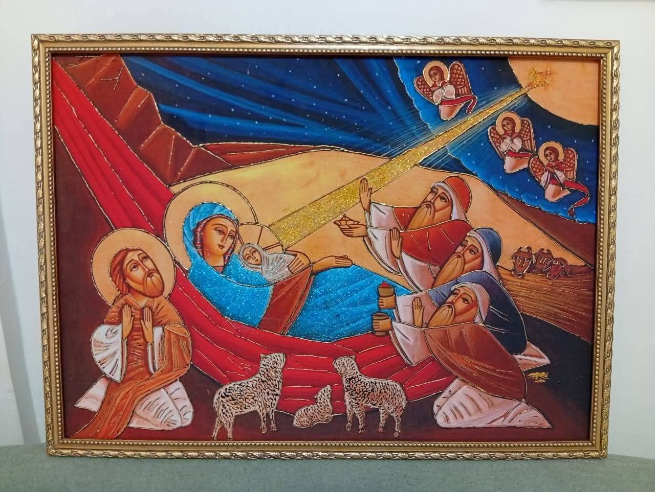 طلاب جامعة بنها يبدعون في رسم لوحات قبطية احتفالا بعيد الميلاد المجيد
